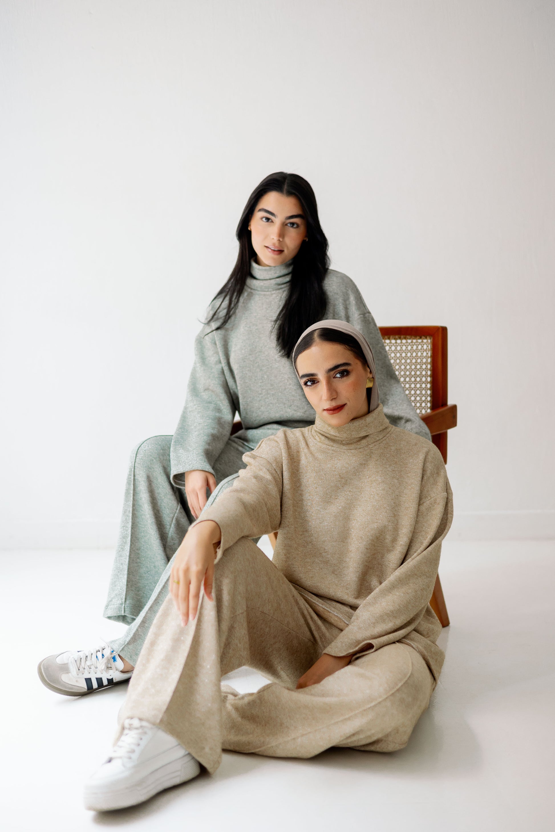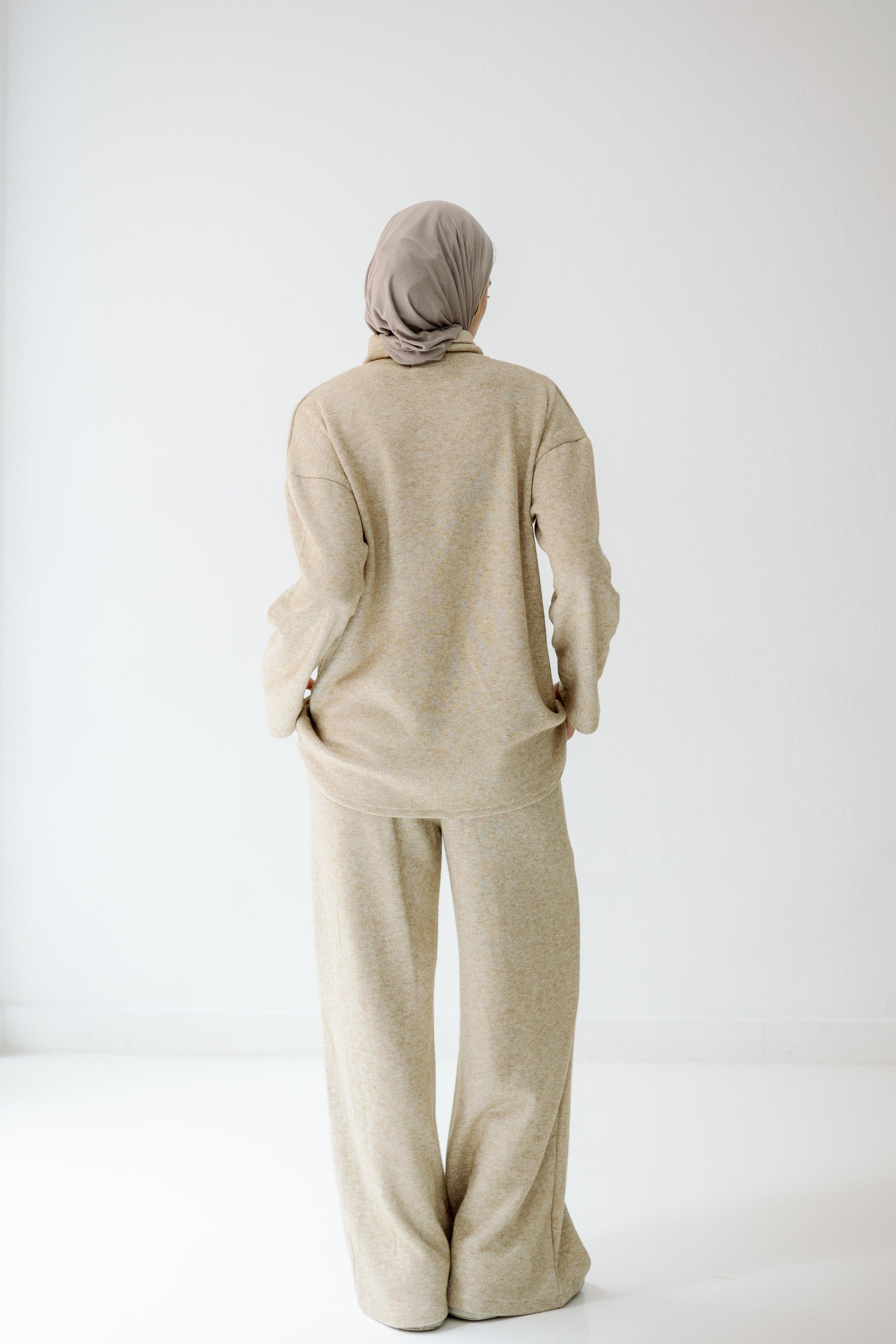 Our Chill & Glow Set is crafted from a premium, ultra-soft knit fabric with a fine subtle shimmer effect, giving it a refined and elegant look for everyday wear.