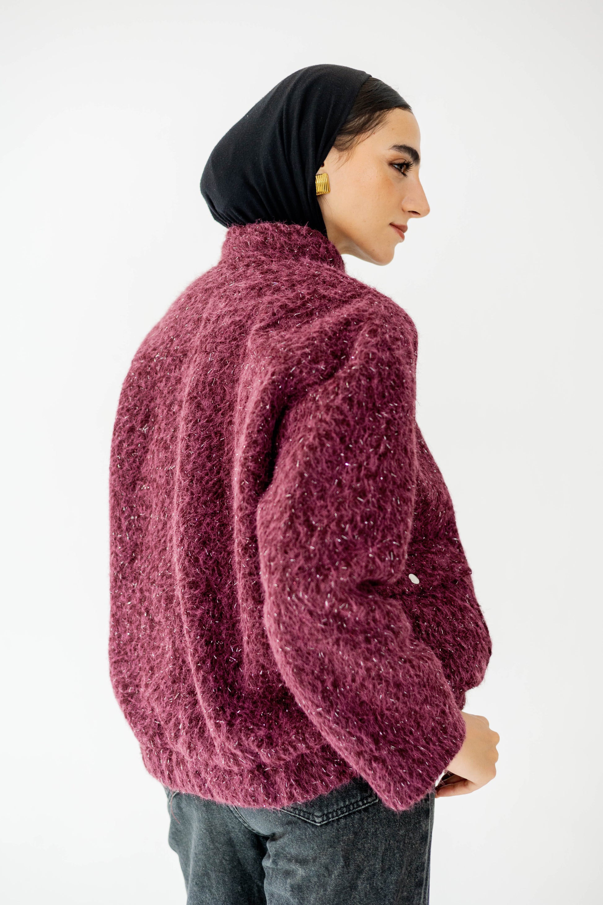 • Fabric: Soft bouclé wool-blend fabric a fluffy, cozy texture with subtle shimmer threads for a chic, elevated look.